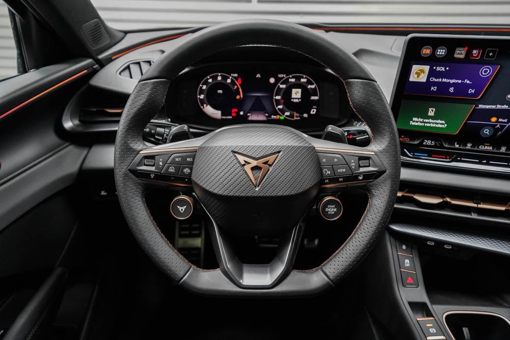 Beifahrersitz höhenverstellbar, Fahrersitz höhenverstellbar, Lederlenkrad, Lendenwirbelstütze, Mittelarmlehne vorne, Sportsitze, Gepäckraumabdeckung, geteilt umklappbare Rücksitzlehne, Lenkrad höhenverstellbar, Sitzbezug Dinamica, Ambiente-Beleuchtung, Elektrisch verstellbarer Fahrersitz mit Memory Funktion, Beheizbares Lenkrad, Multifunktionslenkrad, Isofix, Isofix Beifahrersitz, abgedunkelte Scheiben, 20 Zoll Alufelgen Hadron Kupfer, Dachreling schwarz, Außenspiegel in Wagenfarbe, Stoßfänger in Wagenfarbe, Türgriffe in Wagenfarbe, ABS, Alarmanlage, Außenspiegel elektrisch anklappbar, Fensterheber elektrisch, Kopfairbags, Nebelscheinwerfer, Schiebedach, Seitenairbags, Servolenkung, Sitzheizung, DCC, ESP, Wegfahrsperre, Außenspiegel beheizbar, Beifahrerairbag, Fahrerairbag, Parkpilot hinten, Parkpilot vorne, Reifendruckkontrolle, Head-up Display, Regensensor, Lichtsensor, Digital Cockpit, Tempomat Abstand ACC, Fernlichtassistent, Spurhalteassistent plus, Totwinkelassistent, Verkehrszeichenerkennung, LED Matrix Scheinwerfer, Tagfahrlicht LED, Pannenset, Rückfahrkamera, Park-Assistent, Panoramadach, Elektrische Heckklappe inkl. Virtual Pedal, KeylessEntry, StartStopSystem, Innenspiegel automatisch abbl., Müdigkeitswarnsystem, Notrufsystem, Schaltwippen, Klimaautomatik 3-Zonen, 360-Grad-Kamera, Geschwindigkeitsbegrenzer, Android Auto, Apple Carplay, Freisprecheinrichtung, Induktionsladestation, Sprachsteuerung, USB, Radio DAB, Bluetooth, Bordcomputer, Radio-Navigationssystem, variabler Ladeboden, Full Link, AHK Vorbereitung, erweiterte Herstellergarantie 5 Jahre/100.000km, Schalensitze vorn, Exit Assist,